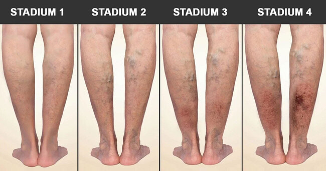 Od mírné ztuhlosti a otoku ... až do změny barvy kůže kolem křečových žil...